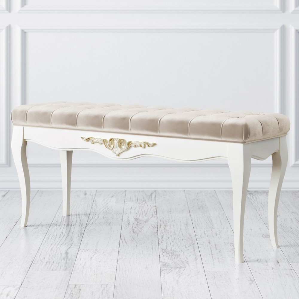Элегантная скамья неизменный атрибут роскошных классических интерьеров. Позолоченные декоративные элементы органично сочетаются с нежнейшим оттенком слоновой кости. Ножки сделаны из натурального массива – самого прочного и экологичного материала. Мебель можно использовать для обустройства жилых помещений в стиле ампир, модерн или шебби-шик. Сборка не требуется.
