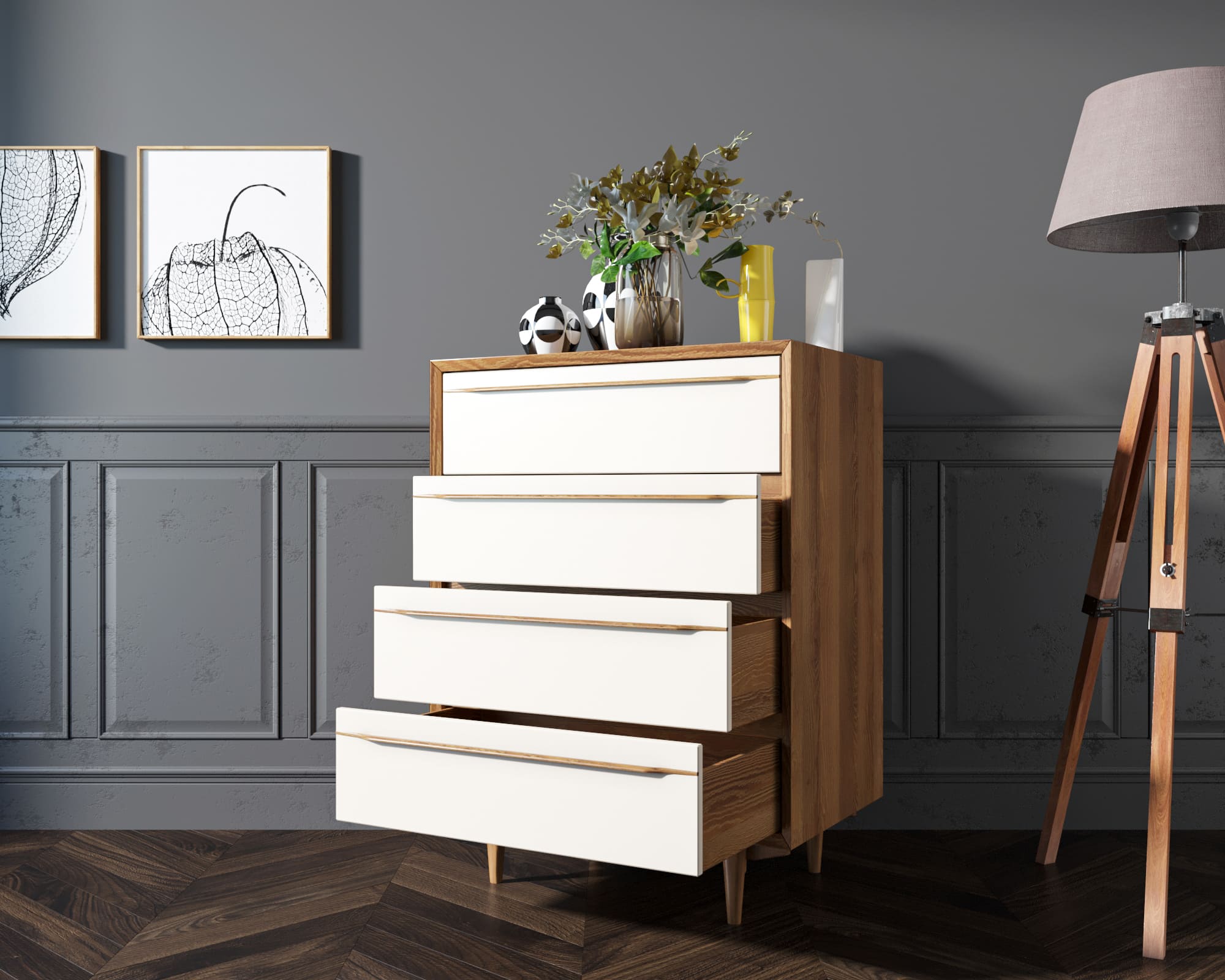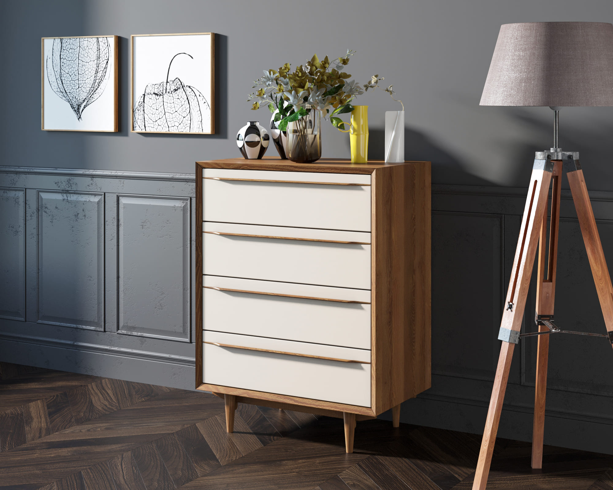 Комод в Скандинавском стиле "Bruni white" на четыре ящика