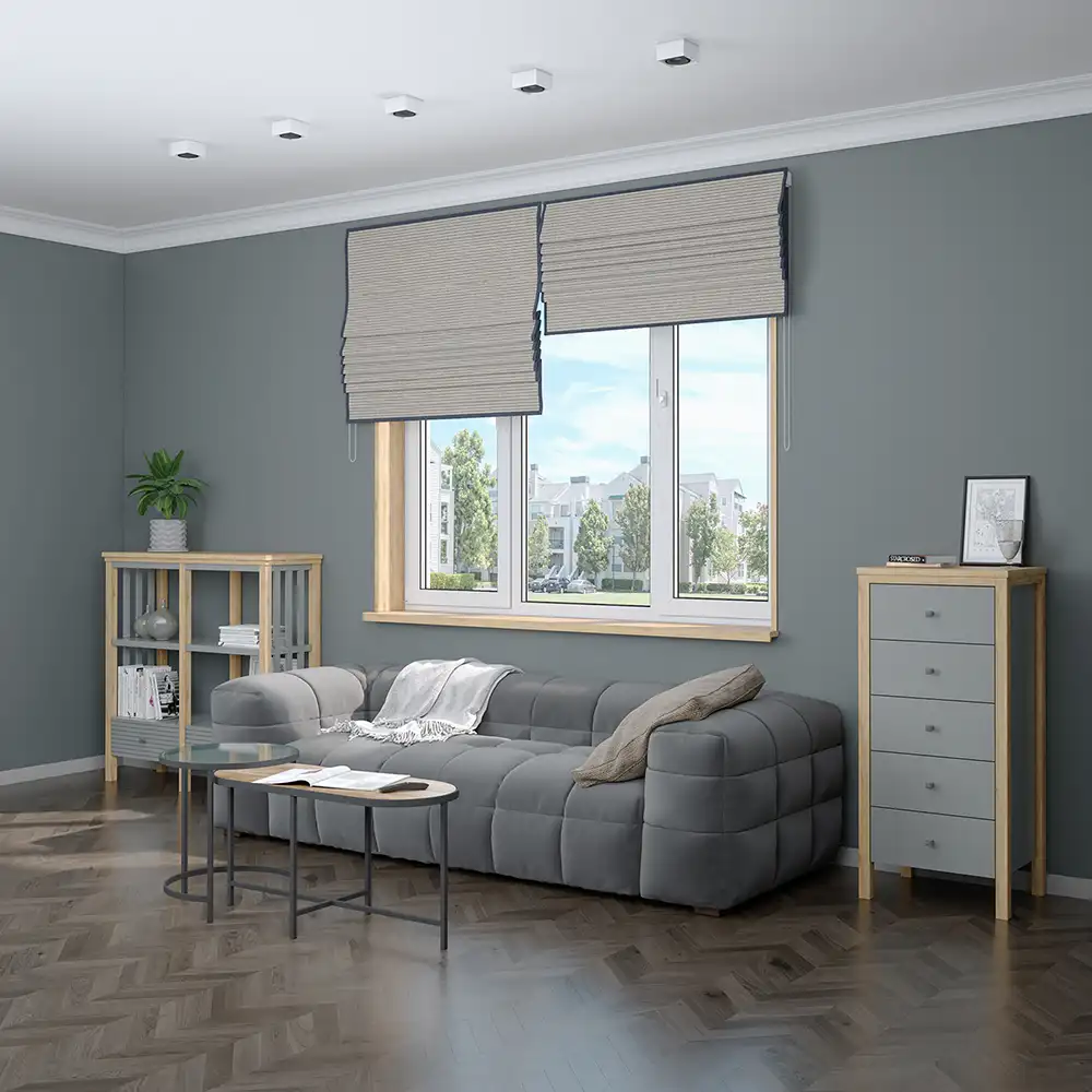 Ящики оснащены направляющими европейского производства со встроенными доводчиками, выдвигаются плавно и тихо. Дверные петли также с доводчиками. На ящиках и дверях установлены квадратные металлические ручки-кнопки с покрытием «состаренное серебро».