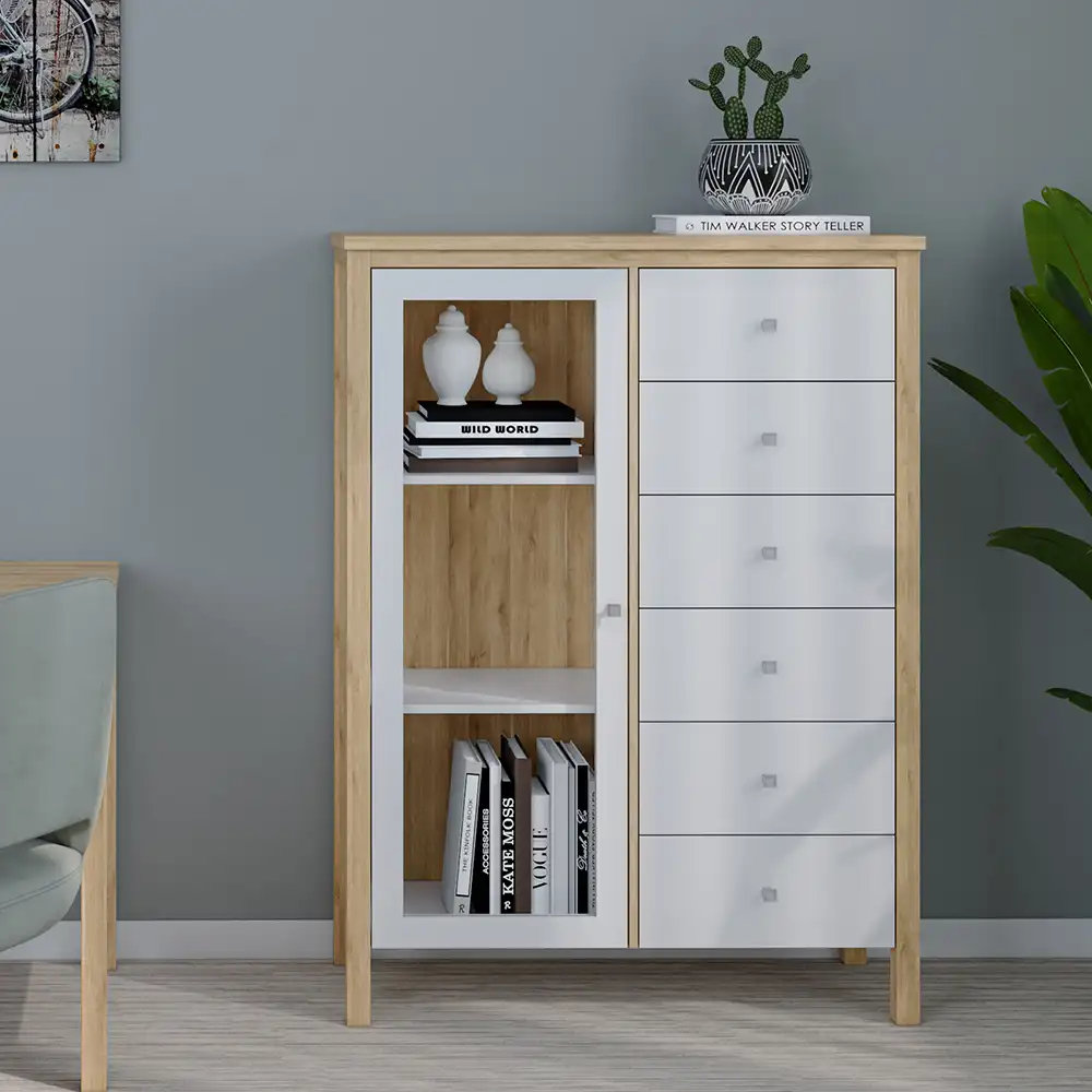 Тумбы, комоды и стеллажи «Вояж» в скандинавском стиле изготавливаются из массива сосны. Это cтильная современная мебель для спален, прихожих, гостиных, библиотек, комнат-кабинетов. Предлагается 2 цветовых варианта: «белый лак/антик 24» и «серый 7042/антик 24».