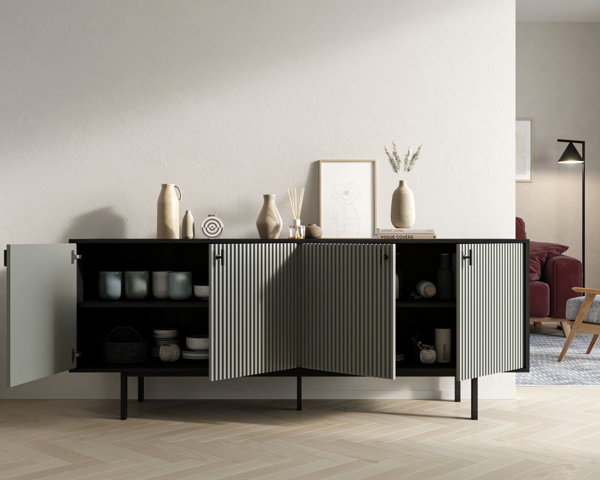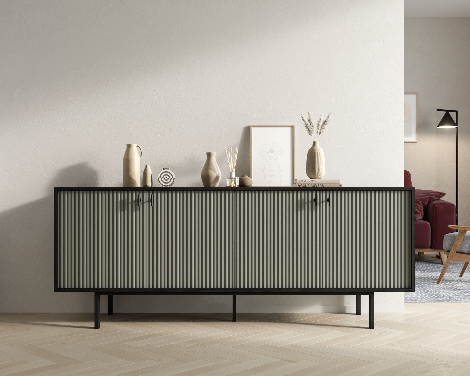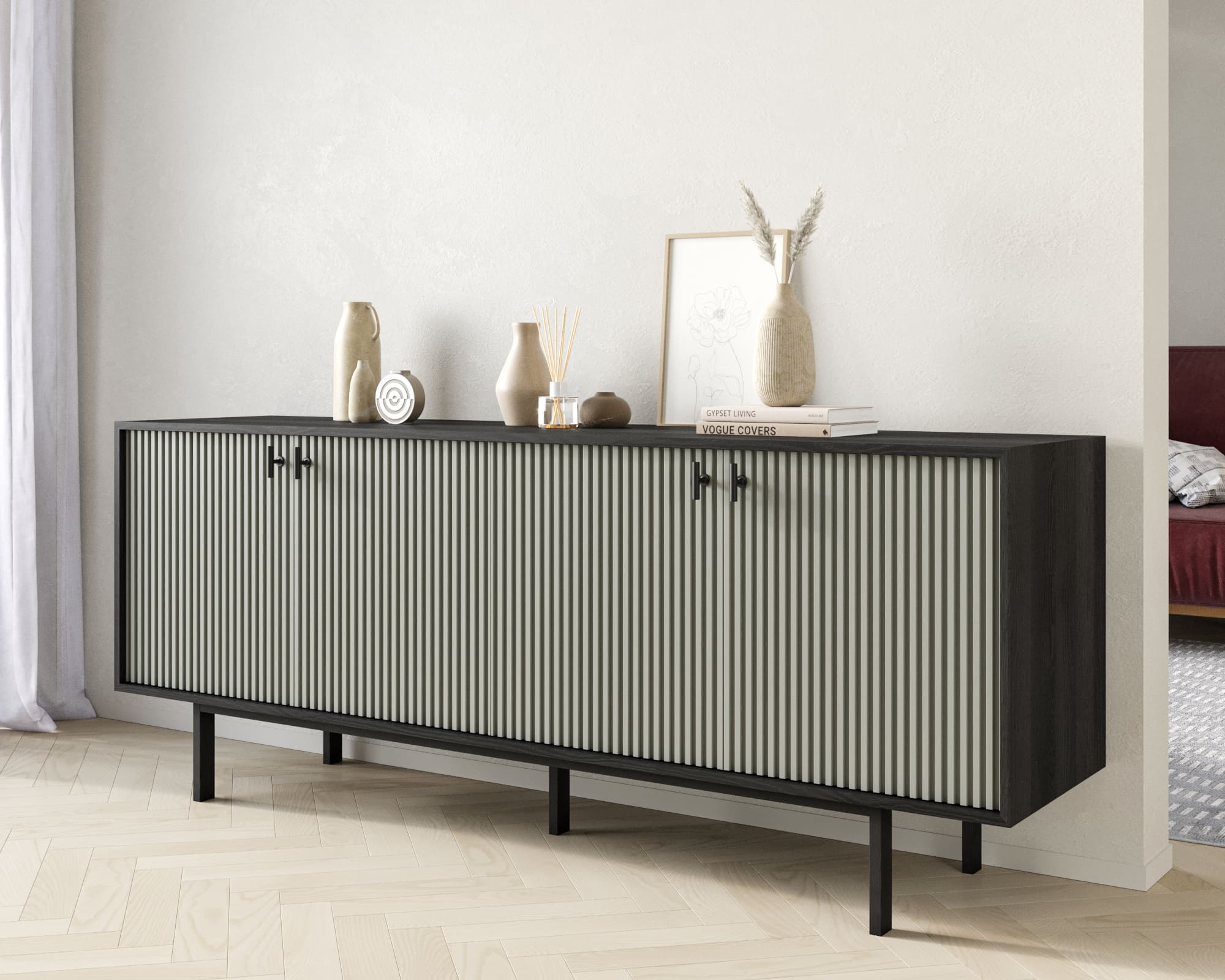 Комод с четыремя дверками "Emerson" арт EM01/gray/L
