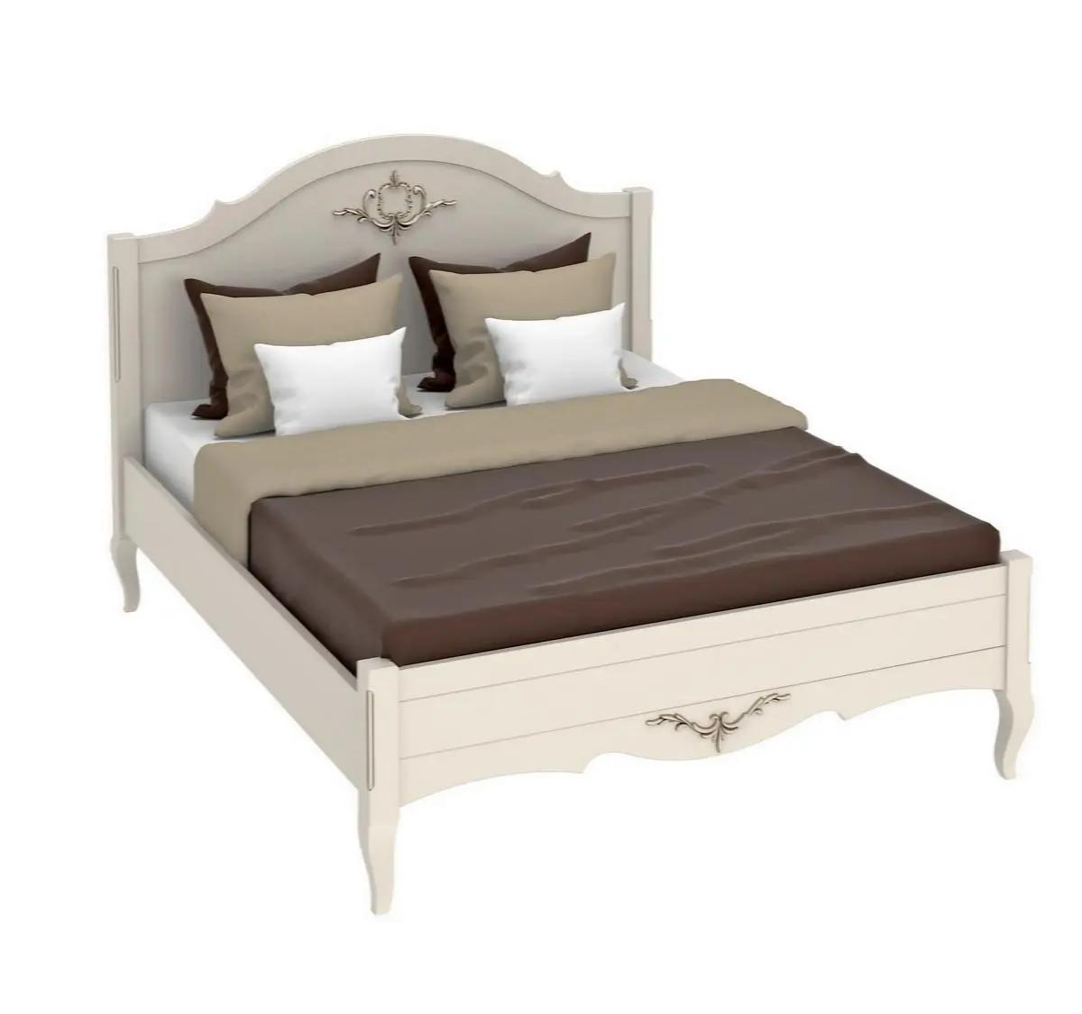 Кровать на ножках с плавным, округлым изголовьем и низким изножьем – очень стильное интерьерное решение.