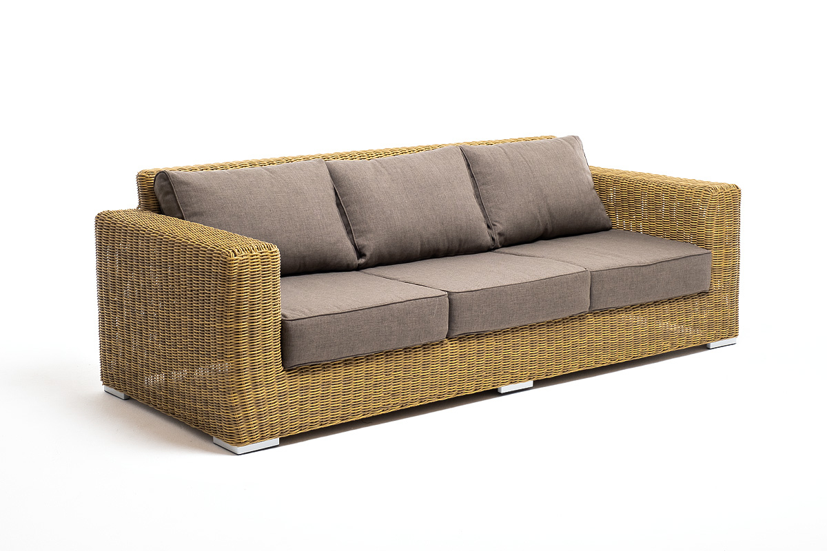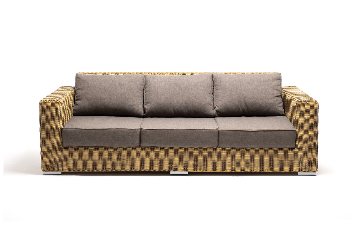 Комплект "Боналли" с плетением из искусственного круглого ротанга для обустройства лаунж-зоны. В ее составе находятся: - два кресла – 1000×900×775 мм - трехместный диван – 2300×900×775 мм - журнальный столик – 1300×600×400 мм В качестве основы применяется прочный алюминиевый каркас. Цвет комплекта – соломенный. На креслах и диване предусмотрены мягкие подушки, съемные чехлы которых пошиты из полиэстера, плотностью 230гр/м2. Ткань в обязательном порядке пропитывается влагоотталкивающими составами. Поверхность плетеного столика представляет столешница из закаленного стекла – 5 мм. "Боналли" диван из искусственного ротанга трехместный, цвет соломенный 1шт. 2 300Х900Х775, "Боналли" журнальный столик из искусственного ротанга, цвет соломенный 1шт. 1 300Х600Х400, "Боналли" кресло из искусственного ротанга, цвет соломенный 2шт. 1 000Х900Х775,
