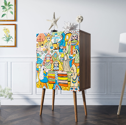 Комод "Berber"на высоких ножках из массива ясеня и дизайнерским принтом на фасаде будет акцентной вещью в вашем интерьере. Используйте его в прихожей, гостиной или спальне в качестве небольшого, но практичного места для хранения мелочей.