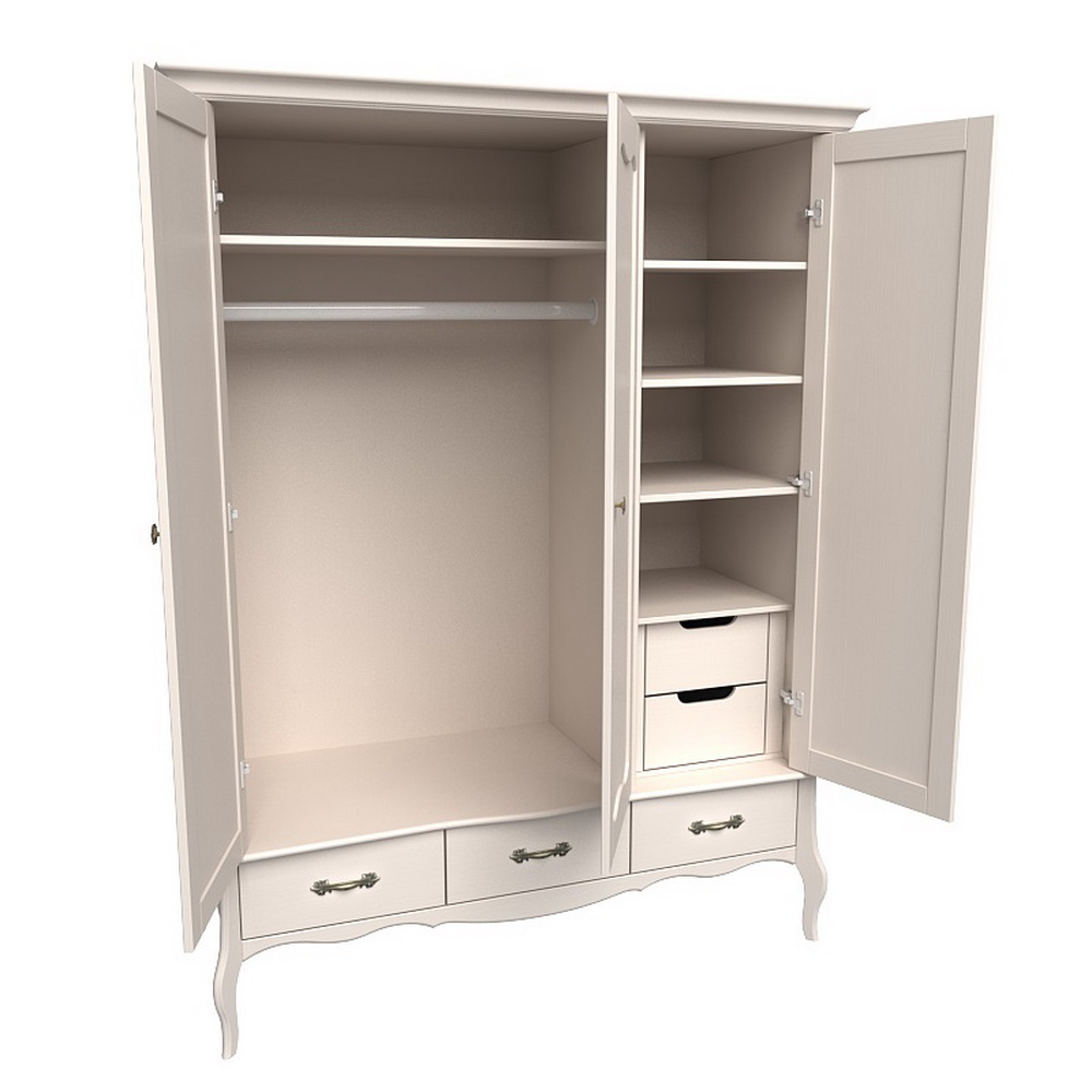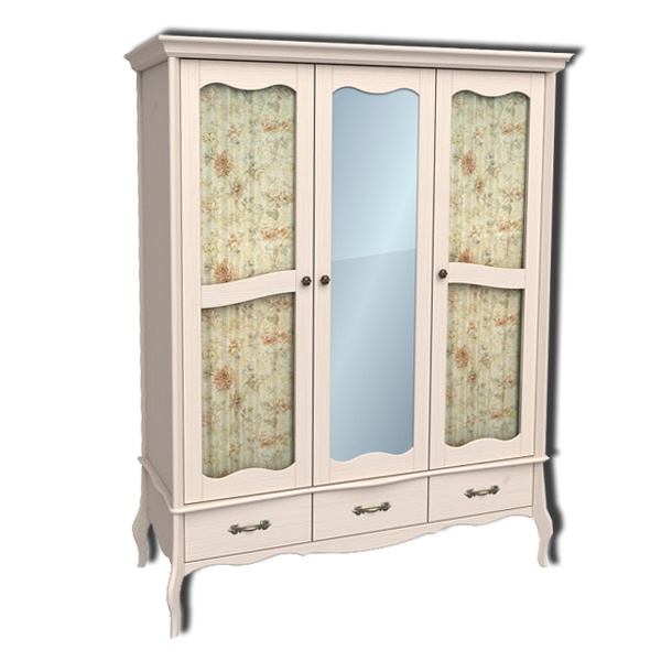 Изящный и одновременно вместительный шкаф Лебо 3-х дверный с 2-я стеклянными дверями и одной зеркальной, выполнен в элегантном французском стиле. Изысканные гнутые ножки подчеркивают стиль Прованс. Шкаф прекрасно впишется как в классический, так и в другой интерьер. При изготовлении шкафа, кроме массива сосны, не применяется никакие другие материалы, такие как дсп, мдф, которые могли бы поставить под сомнение экологичность изделия.