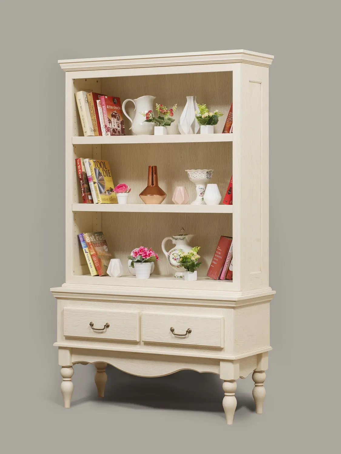 Цена указана за изделие в бесцветном лаке. На титульной фотографии цвет стеллажа - крем эмаль. Стоимость зависит от выбранного покрытия. При заказе мебели в составном цвете цена считается по более дорогому.