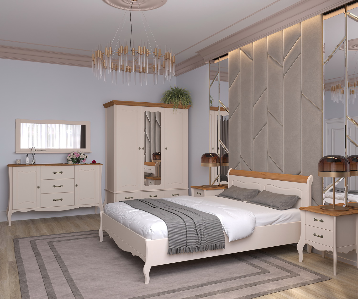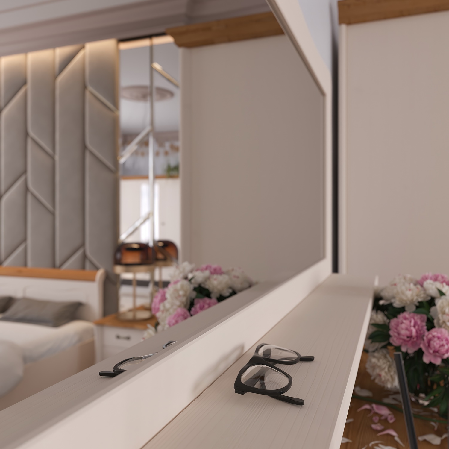 Зеркало – важный атрибут, без которого сложно обойтись. В коллекции «Лебо» представлено три вида зеркал. Зеркало с полкой – это идеальное дополнение к широким комодам. Габариты этого зеркала позволяют увеличить общее пространство помещения, а полочка послужит местом расположения сувениров, аксессуаров, которые напоминают о приятных моментах или всегда нужны под рукой. Рама зеркала изготовлена из массива сосны. Цвет – только бежевый воск.
